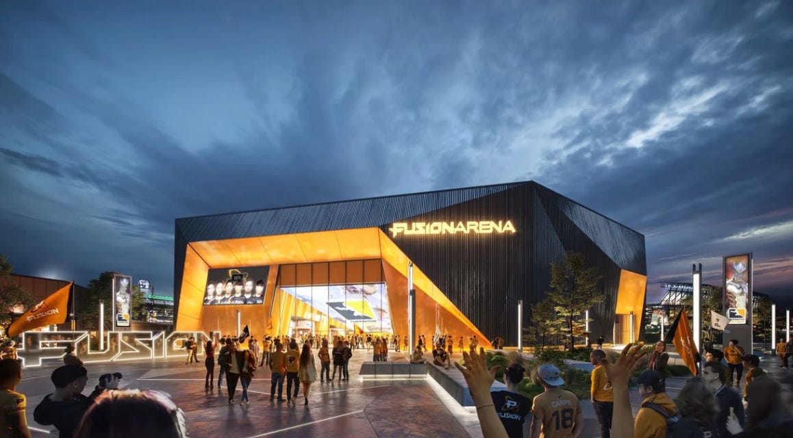 ⬆️ The Upside: As professional sport teams start to realize the additional revenue streams inherent in eSports, will they also start to think along the lines of how to bolster these investments beyond just their branding and cashflow? Building physical capital in the forms of training facilities, stadiums, viewing venues, and other capital enhancements represents future value for teams that have previously seen the need to bolster the team’s bottom line beyond the times their team plays home games (and where they sell jerseys). This trend got a start when teams in the NFL started seeing ways to bring in revenue beyond the 7-8 home games their teams played each year. The New England Patriots and Green Bay Packers have been leaders and trendsetters in building entire entertainment and sporting districts adjacent to their facilities. Now, they’re year-round destinations — and massive moneymakers.