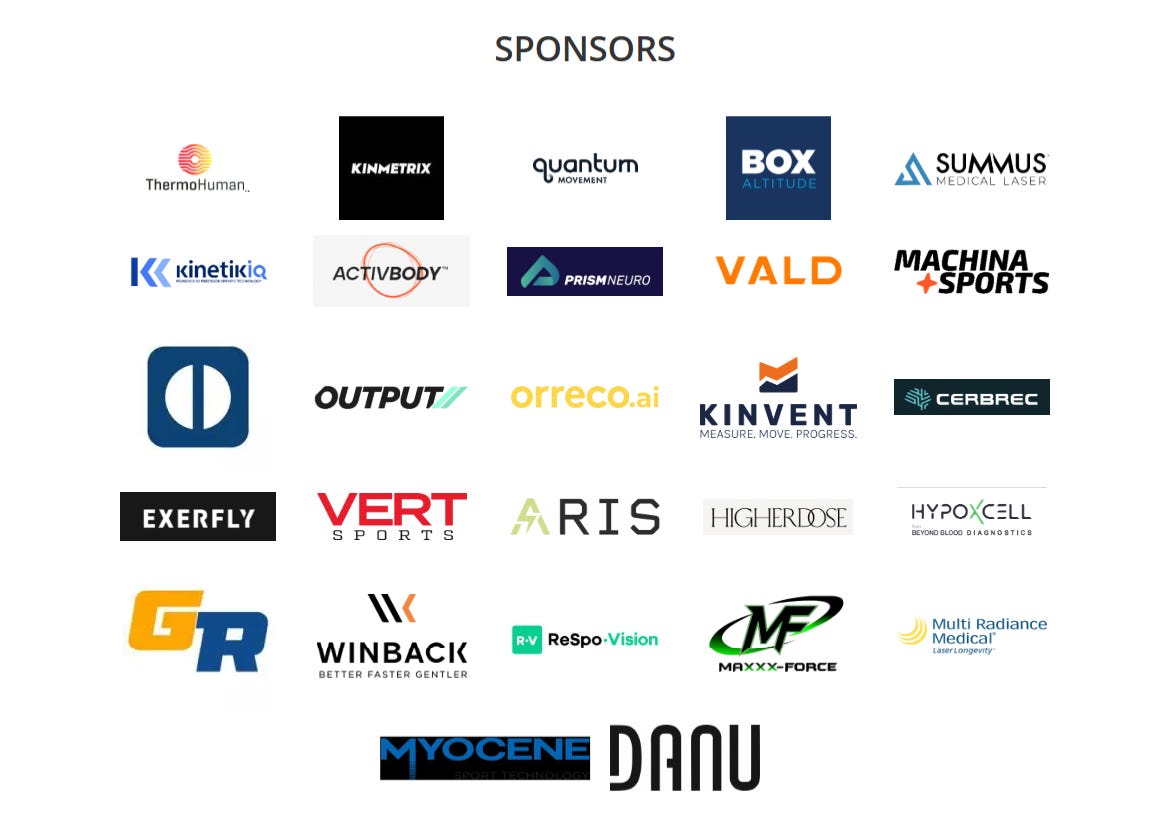 We have 1 booth left so this booth will go quickly. So if you want to exhibit, sponsor or speak at our summit, please reach out to us ASAP at julien@upsideglobal.co. We would also like to give a big thank you to our 27 sponsors namely Kinmetrix, HigherDOSE, Winback, Maxxx Force, Kinvent, Multi Radiance, Vert, Orreco, VALD, Quantum Movement, Aris, Cerbrec Beyond Blood, BrainLit, Danu Sports, ActivBody, OxiWear, Myocene, Prism Neuro, Machina Sports, Respo.Vision, GameRun.ai, Summus Medical Laser, Box Altitude, ThermoHuman, KinetikIQ, Output Sports.