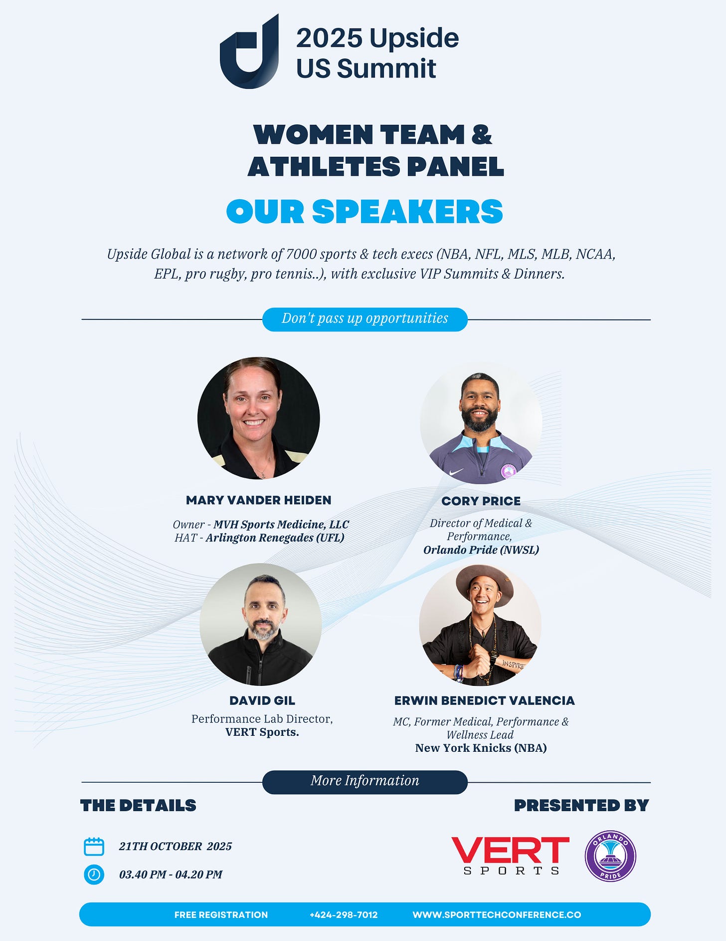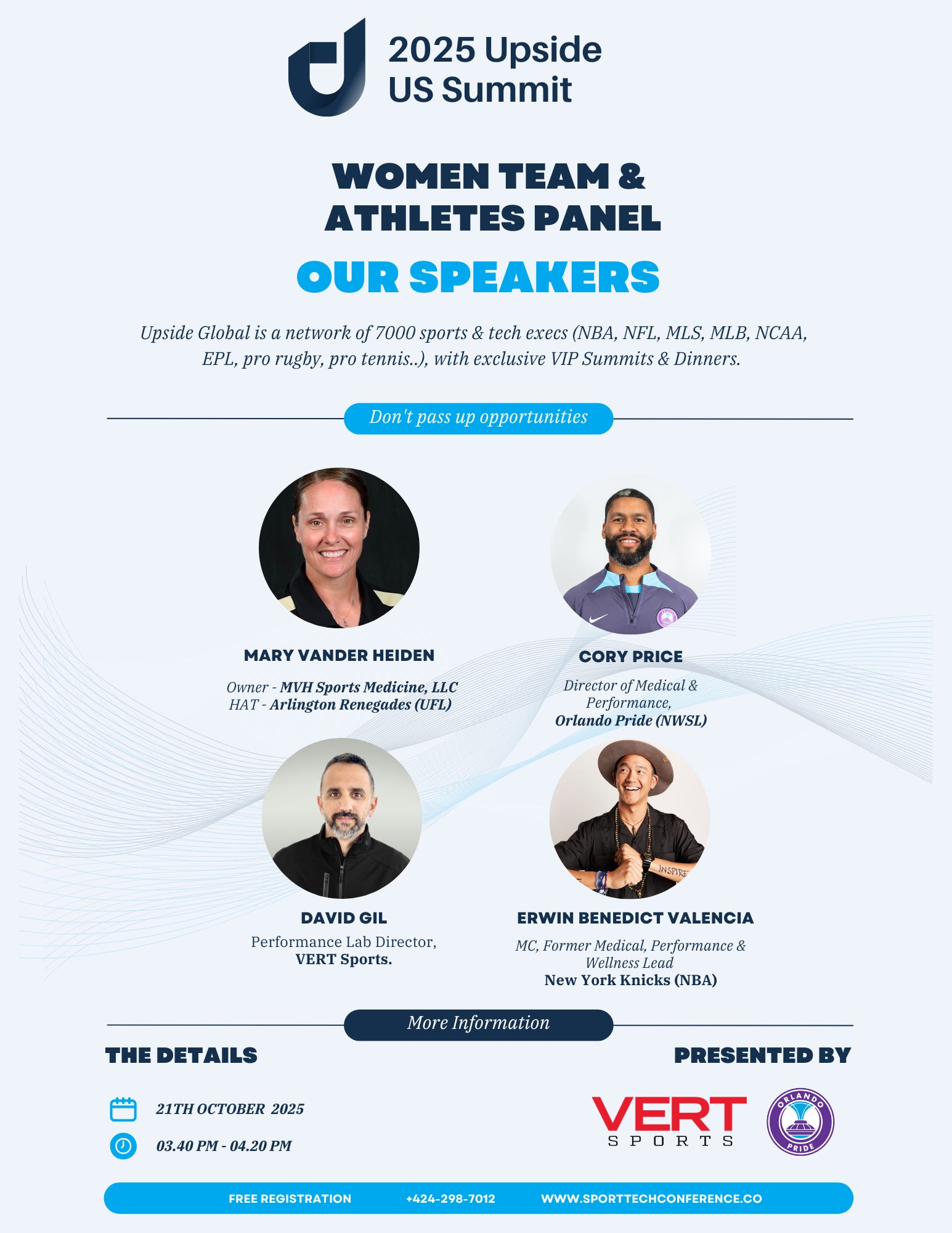 If you want to present in front of 50 top MLS Practitioners (Head of performance, HAT, Head S&C coach, Head of rehab..) please email us at julien@upsideglobal.co. We only have 5 spots for vendors to present.