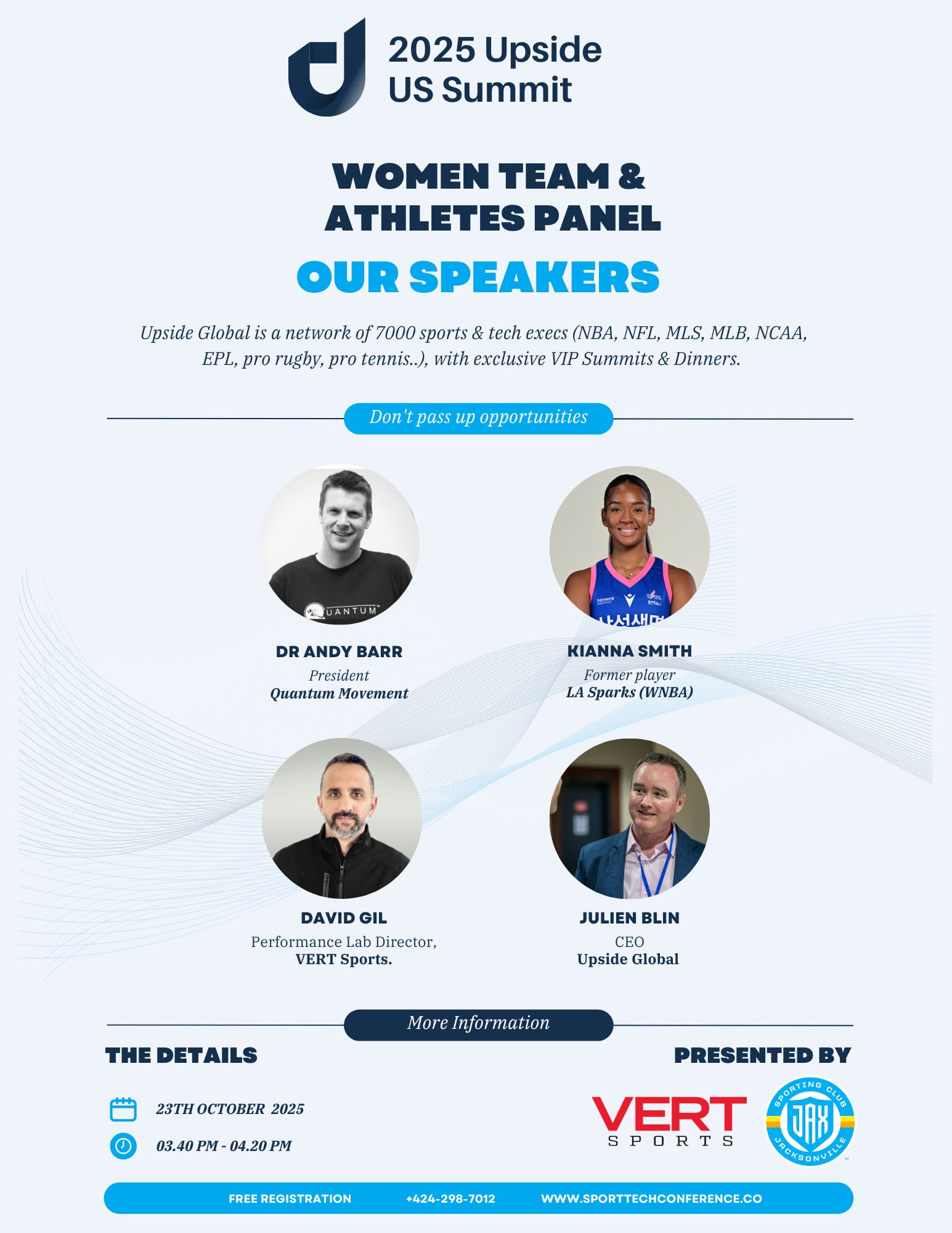 At our 2025 Upside US Sport Tech Summit, we will have 50 top speakers. You can check our first speakers below. We will soon announce many more new speakers for our 2025 US Sports Tech Summit.