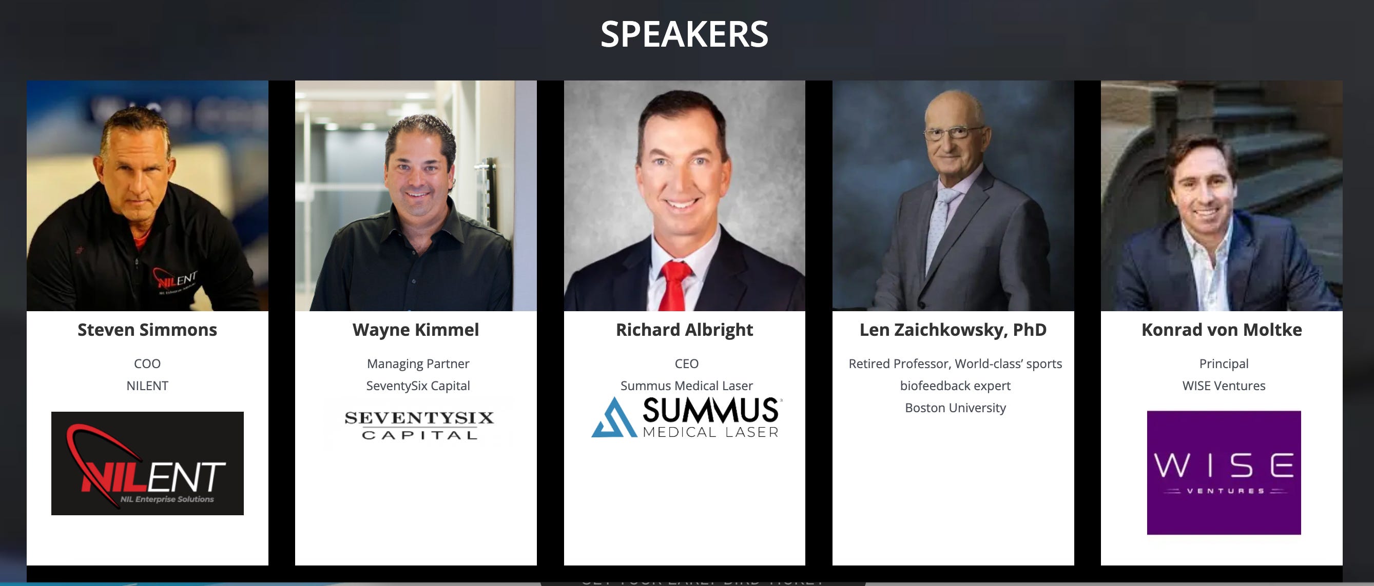 We also only have 8 booths left and we are talking to nearly 50 vendors so the booths remaining will go quickly. So if you want to exhibit, sponsor or speak at our summit, please reach out to us ASAP at julien@upsideglobal.co. We would also like to give a big thank you to our 20 sponsors namely Kinmetrix, HigherDOSE, Kinvent, Vert, Orreco, VALD, Quantum Movement, Aris, Cerbrec, BrainLit, ActivBody, OxiWear, Prism Neuro, Machina Sports, Summus Medical Laser, Box Altitude, ThermoHuman, Valor, Precision Sports Technology, Output Sports.