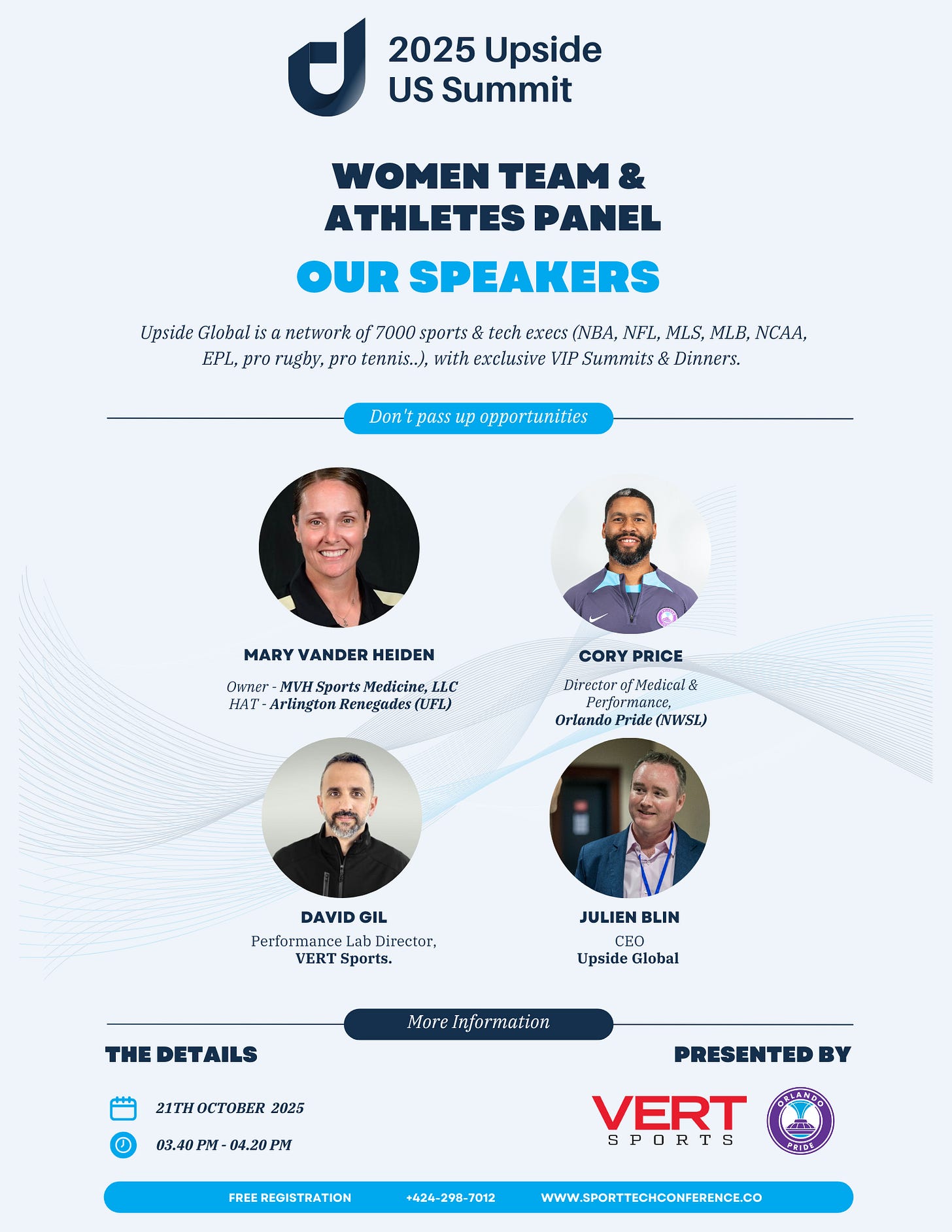 If you want to present in front of 50 top MLS Practitioners (Head of performance, HAT, Head S&C coach, Head of rehab..) please email us at julien@upsideglobal.co. We only have 5 spots for vendors to present.