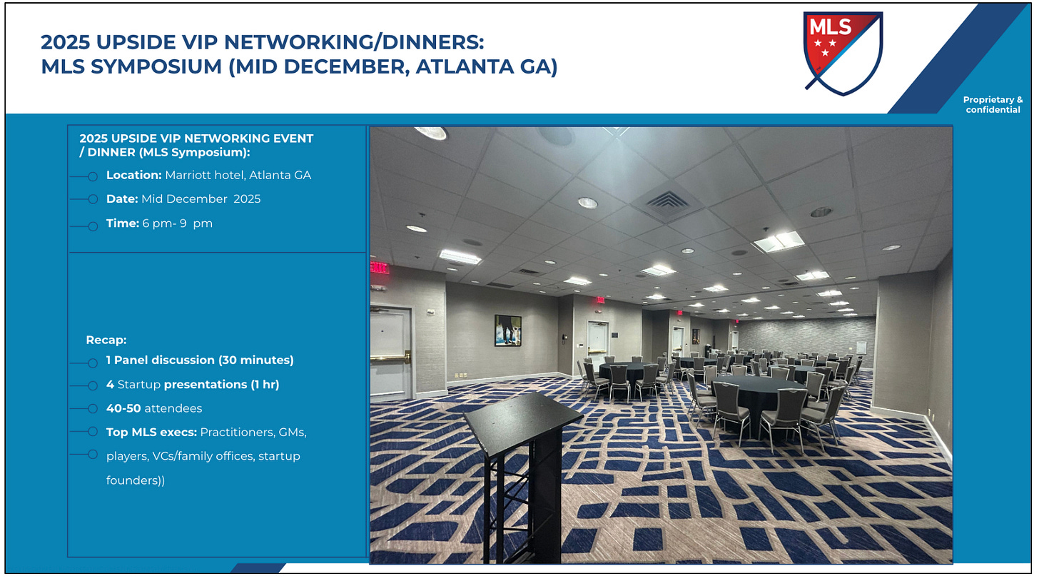 🏟️ 2025 Upside US Summit. New Speakers: DaeSean Hamilton (Ex NFL Player, Denver Broncos), Mary Vander Heiden, Dr Thomas Mitchell, MLS VIP Dinner's 1st Speakers: Darcy Norman, Dave Tenney.