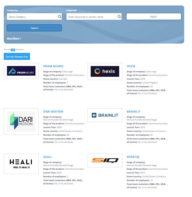 Users of the platform can also search for vendor profiles with critical data across 25 product categories (AMS, GPS, HR, Hydration assessment, AI based injury reduction tools, Thermography, electric massagers, and more).