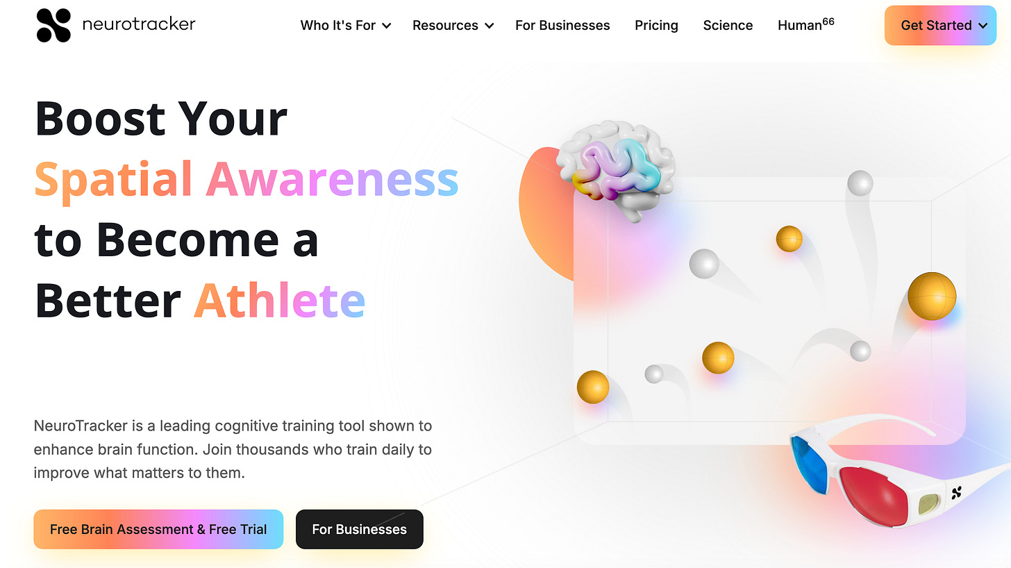 NeuroTracker is a cognitive training platform that challenges attention, working memory, and situational awareness through 3D multiple-object tracking tasks. With adaptive difficulty and dual-task modes, it is used by baseball hitters, soccer players, and even military pilots to sharpen focus under pressure.