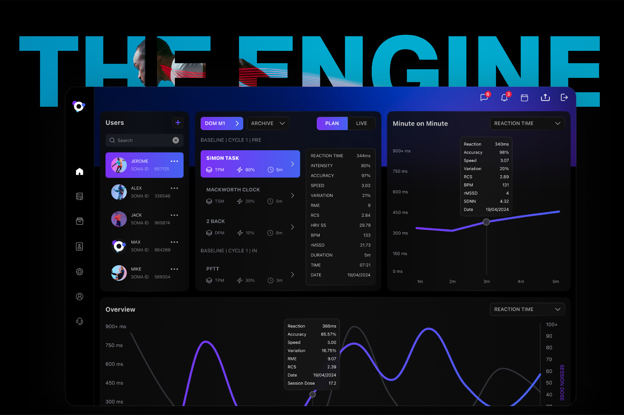 Soma Analytics is a cloud-based neural engine. It forms the core of the Soma ecosystem, seamlessly integrating with Soma NPT to give coaches, clubs, and organizations unparalleled control over cognitive performance.