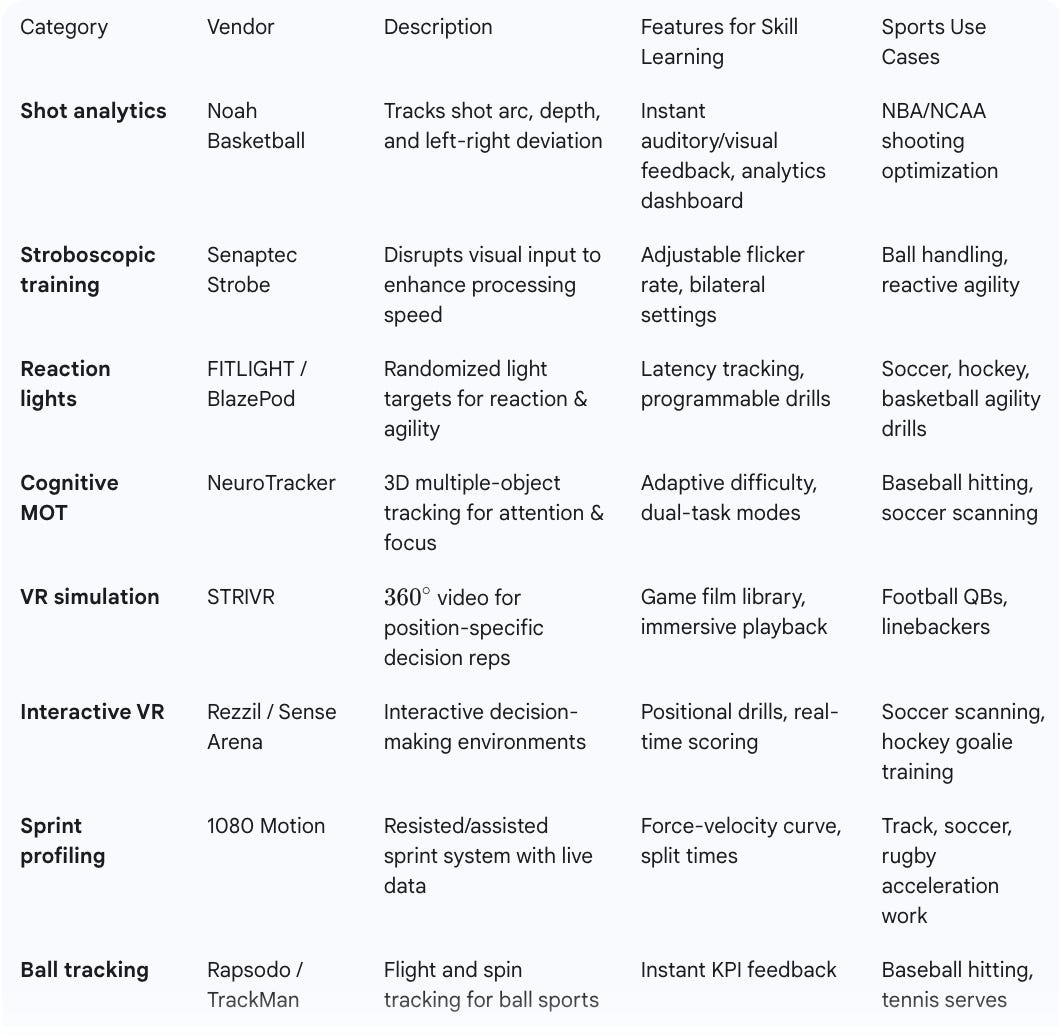 As mentioned above, many elite organizations are creating dedicated skill acquisition labs—such as Footbonaut facilities in German football or VR performance suites in NBA and EPL clubs.