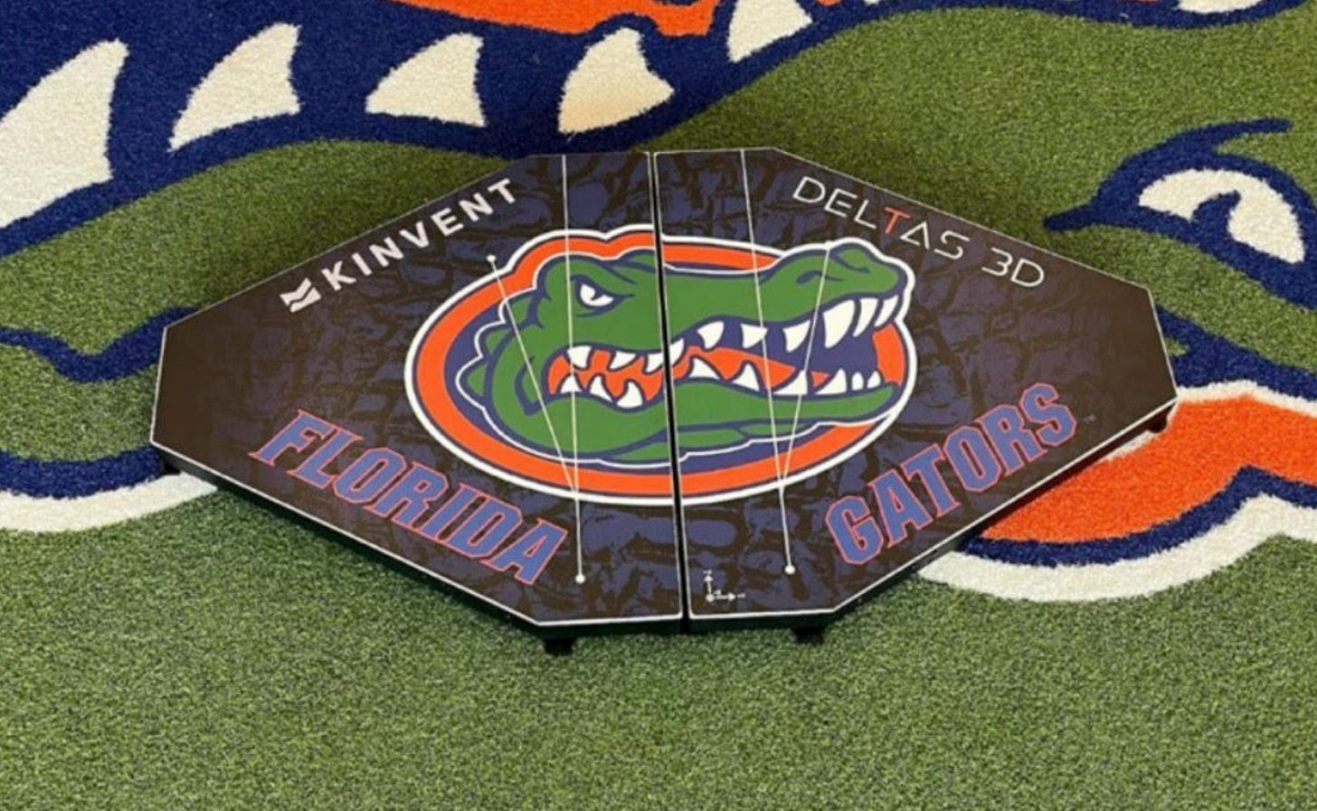 Here is a picture of the KINVENT’s 3D Deltas used by Florida Football and customized using the team’s logo.
