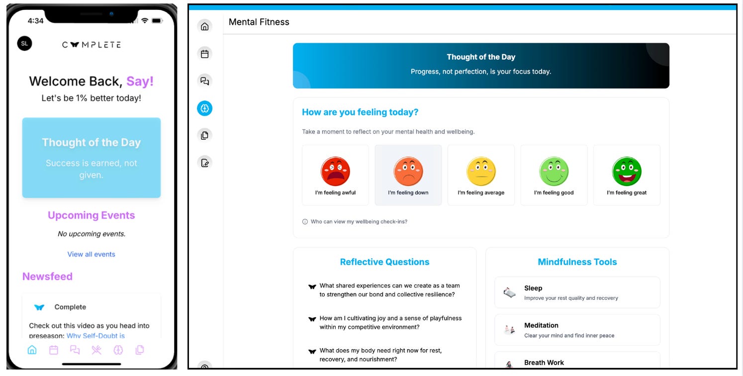 “Even at high-level programs like ACC or Big Ten schools, the tools we had were glorified calendars and messaging systems. There wasn’t anything to help with easily accessible nutrition tools or mental health resources when things got really hard. That gap became extremely clear to me as I went from school to school and experienced different environments. That’s ultimately where the idea for Complete Sports was really born.”