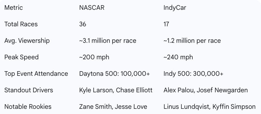 Key Stats About NASCAR and IndyCar (2025 Season)
