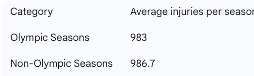 Competition increased injury incidence across most injury types:
