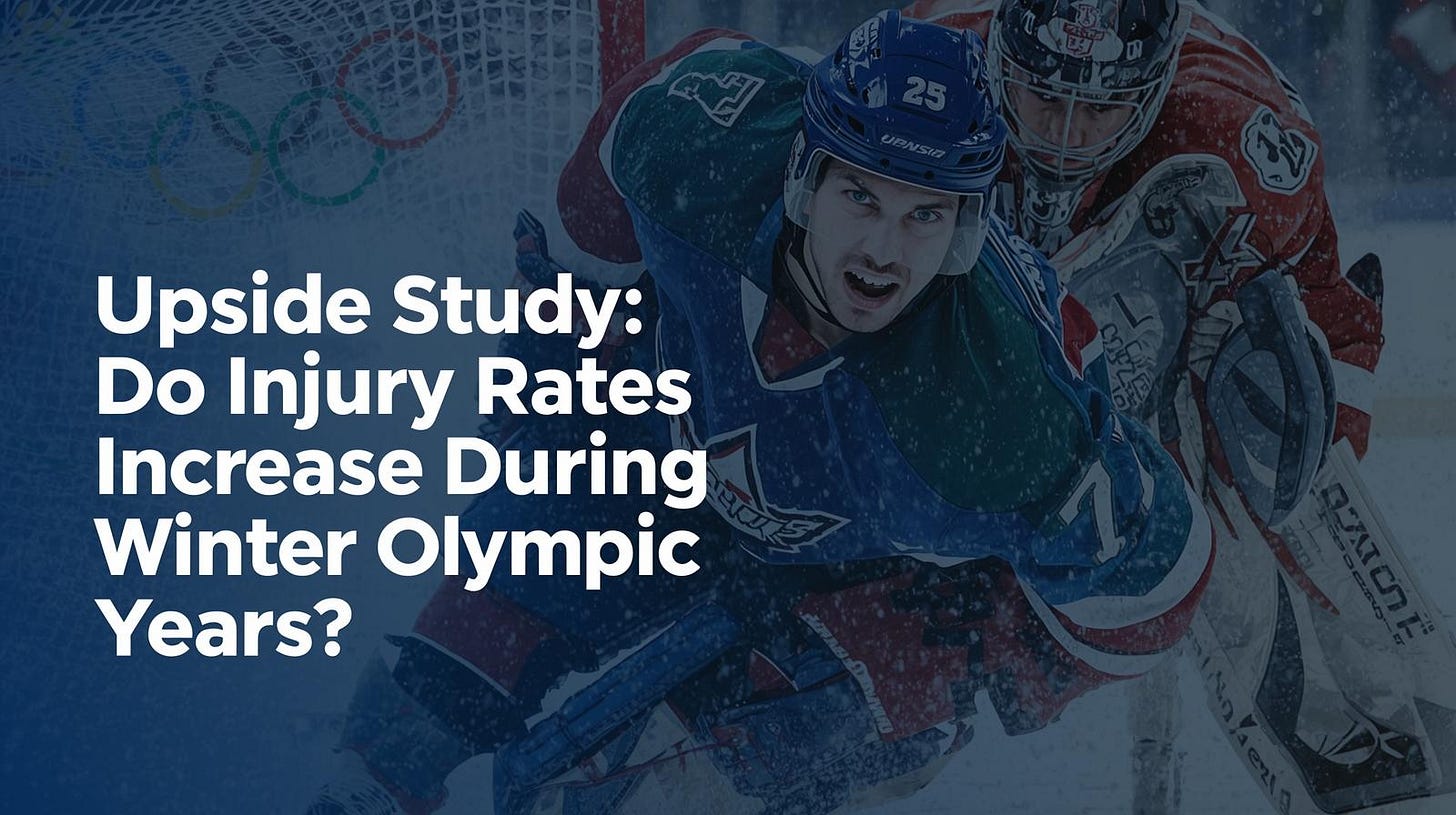 📚 Upside Studies: (1) Basketball Study: Injury Incidence Rate (2) NHL Study: Injury Rates Increase During Olympics? (3) NFL Study: Spending on Star Players & Team Success in the NFL
