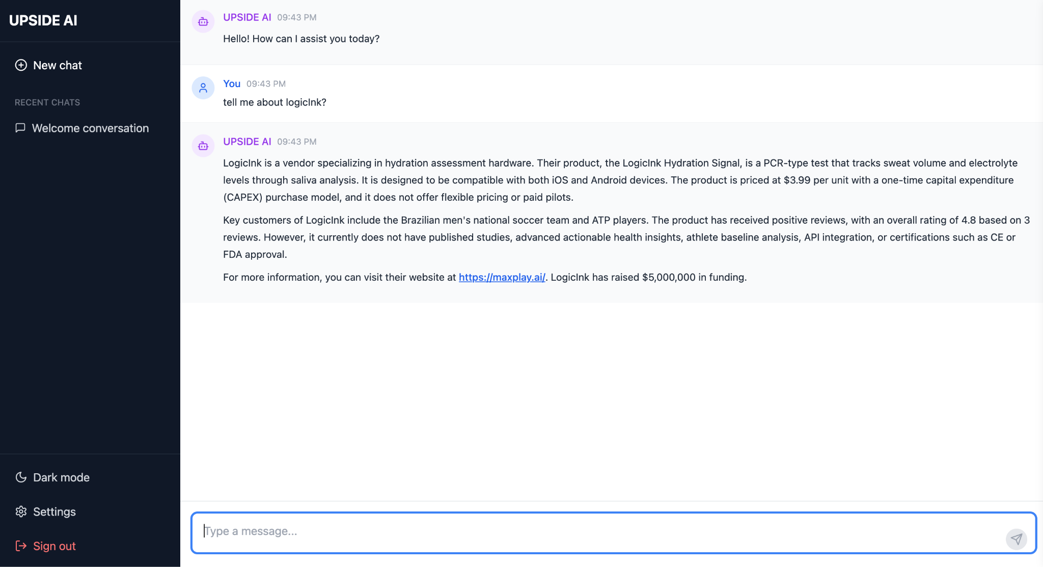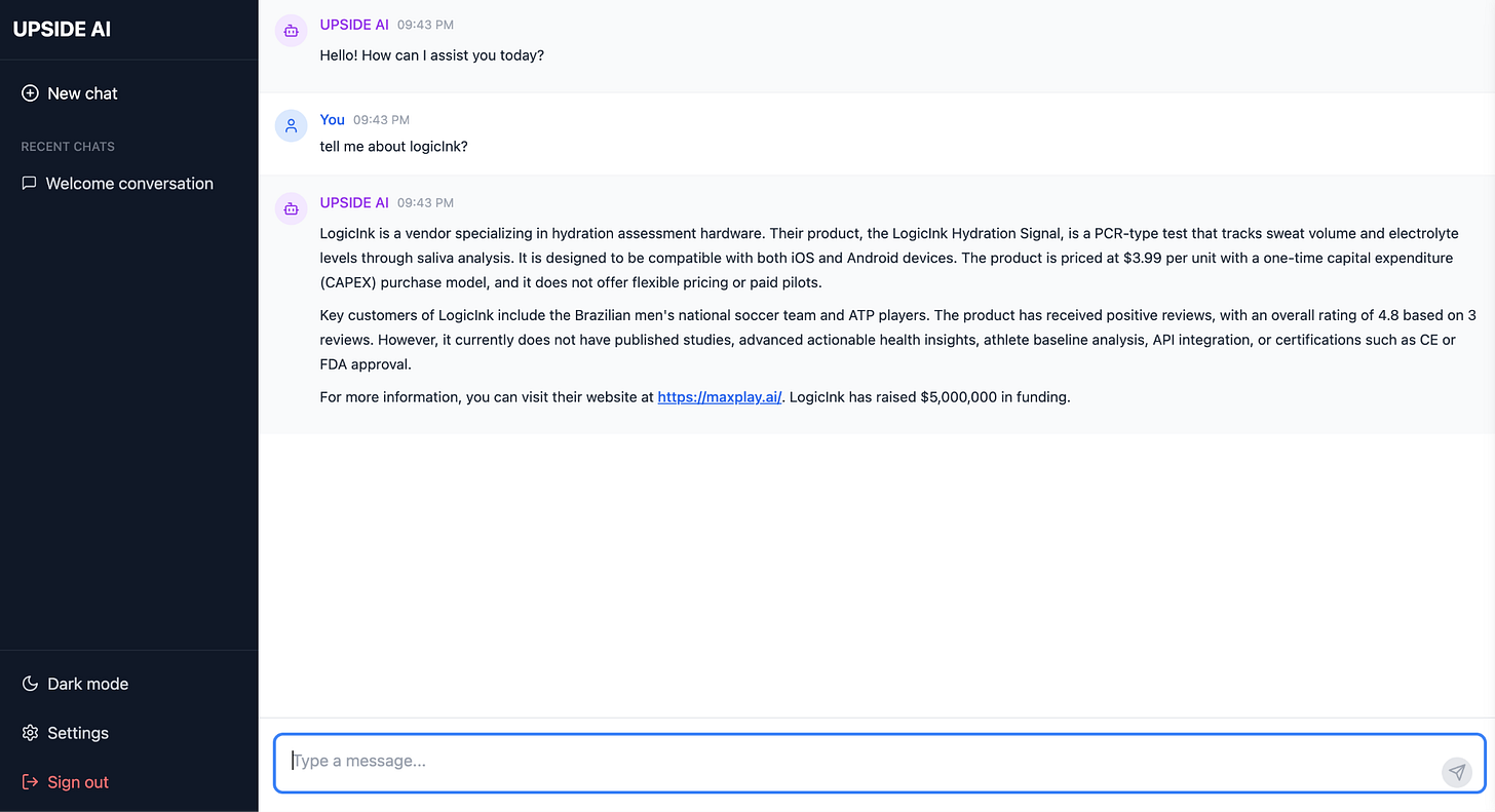 All these featuresāthe product comparison tool, Upside AI assistant, are available through flexible membership options, including monthly and annual plans. The practitioner community and product review sections are free for all practitioners. So if you are a practitioner who wants to join our online community of practitioners please contact us at julien@upsideglobal.co and we will create your online exec profile.