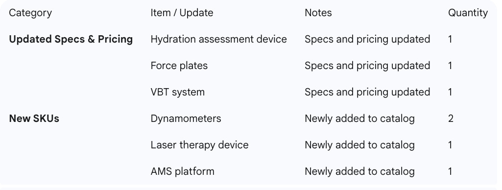 But technology in sports moves fastānew SKUs, product launches, and price changes are happening constantly. Thatās why our team updates the database every single week, so that teams, practitioners, and decision-makers always have access to the most accurate and up-to-date information.