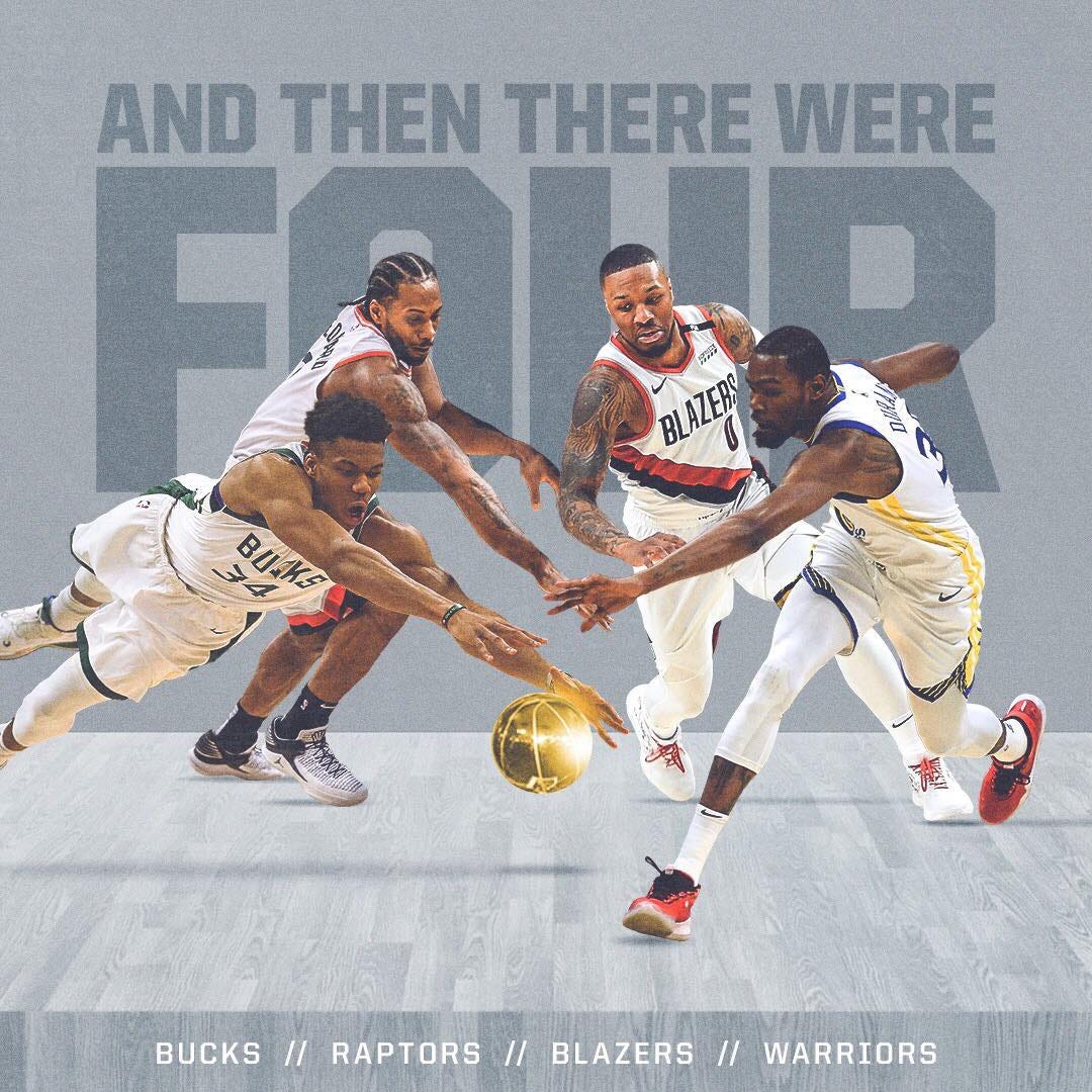 4: There are only 4 NBA teams left in the NBA playoffs: The Warriors, Toronto Raptors, Blazers and Bucks.