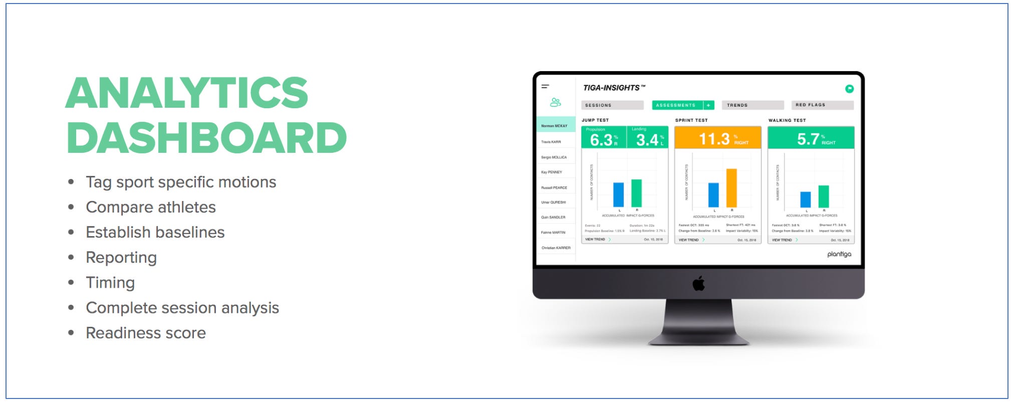 One of the key players in this area is Plantiga, which built some insoles embedded with advanced sensors and algorithms. Using the Plantiga platform, pro teams can flag lower limb asymmetrical loading strategies after injuries like ACL tears, fractures, ankle sprains, hip injuries, soft tissue injuries, lower back/pelvis injuries. They can also create asymmetry norms/baselines to characterize bandwidth of normal function; They can also flag athletes who exit normal bandwidth by player, position, team and sport.
