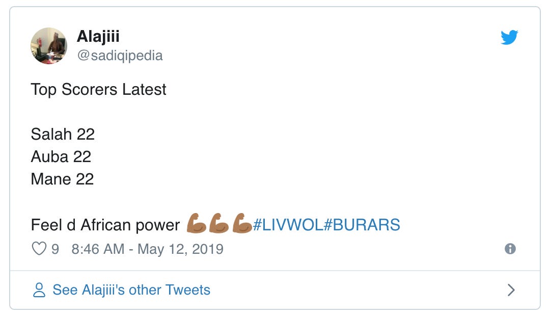 3: History was made this weekend as three players – Mohamed Salah, Sadio Mane (both from Liverpool) and Pierre-Emerick Aubameyang (Arsenal) finished the season as the top-scorers, with 22 goals each in the Premiere League.