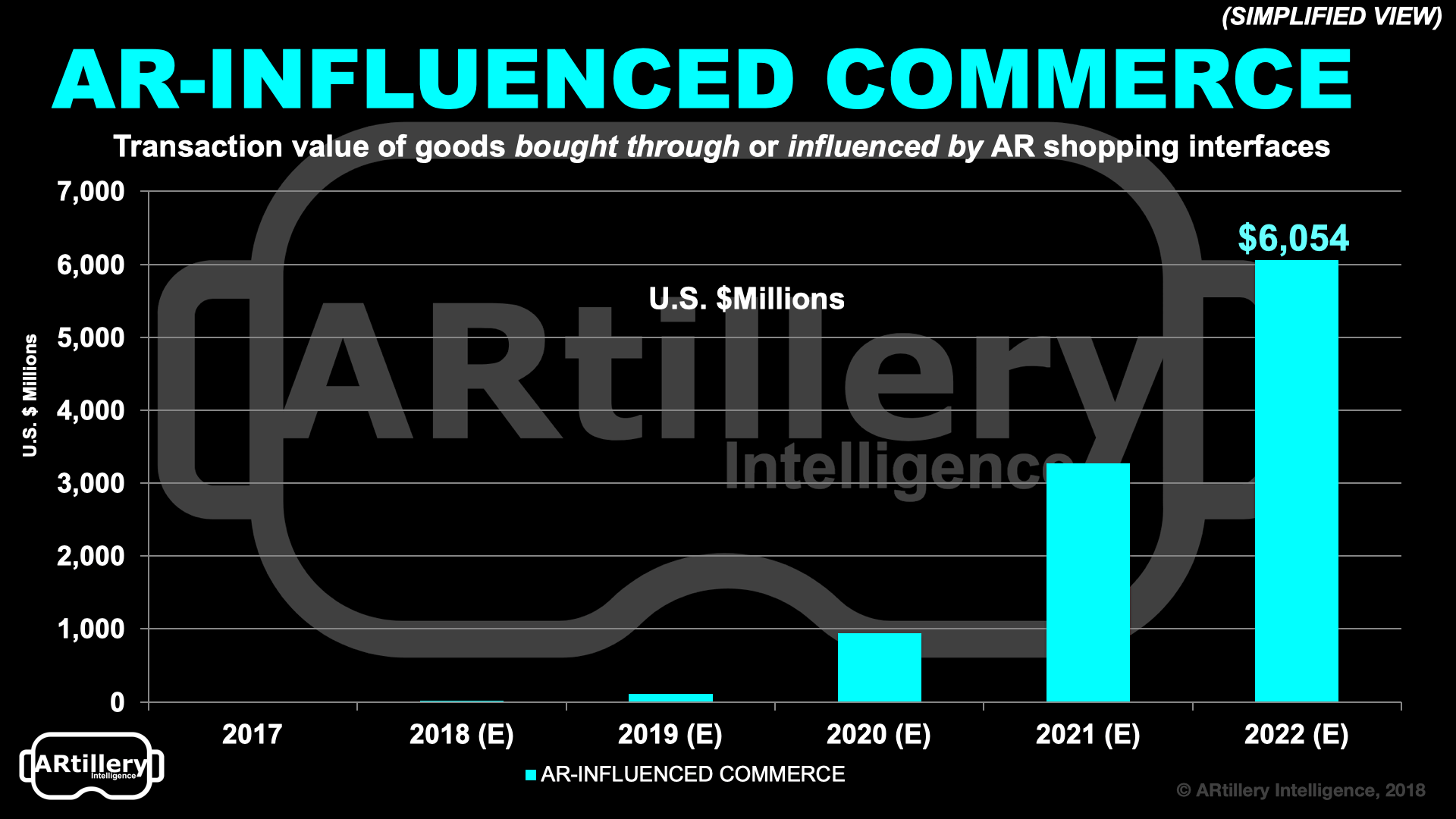 $6B: ARtillery Intelligence projects that $6.1B in annual transaction value (value of goods purchased) will flow through AR interfaces by 2022.
